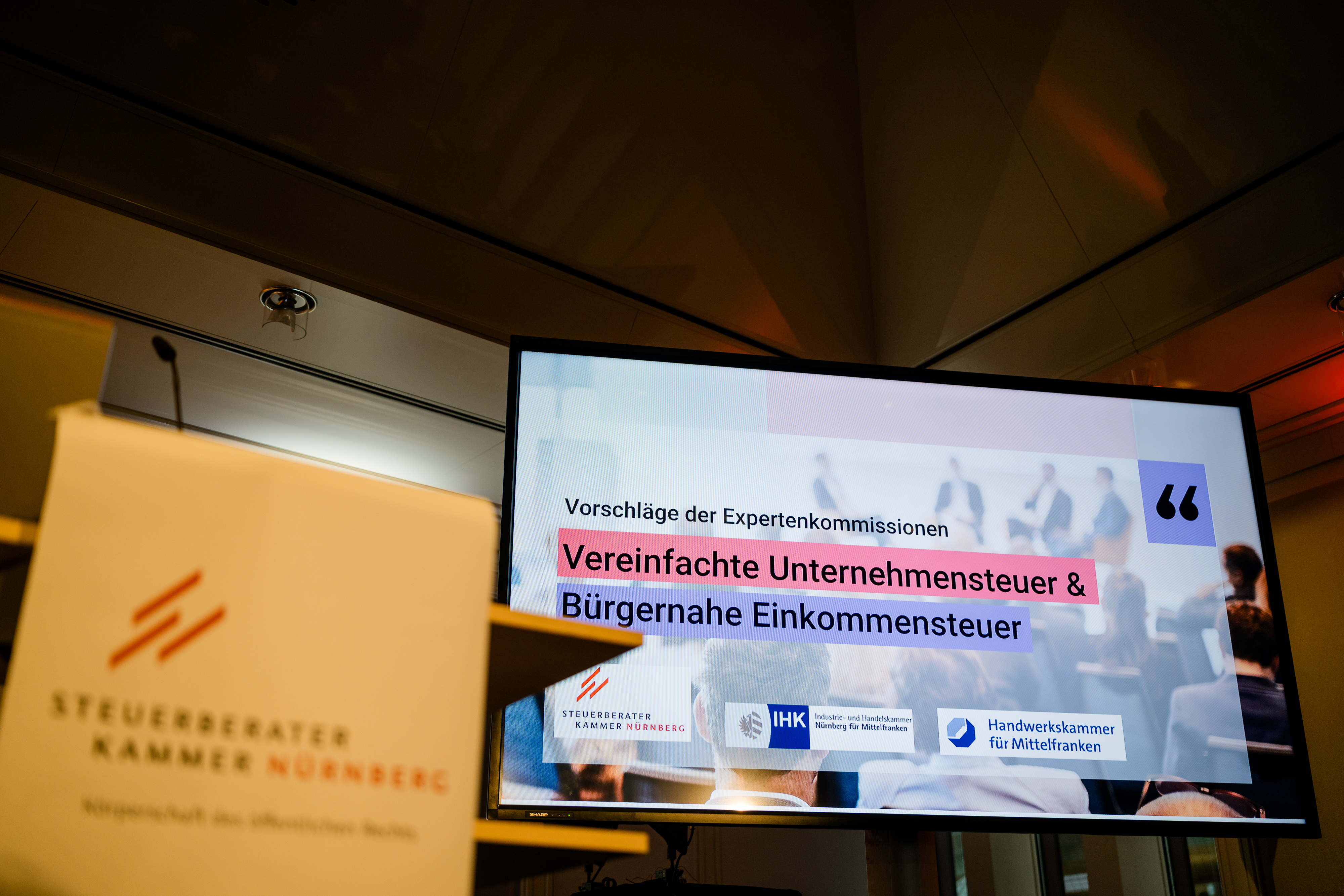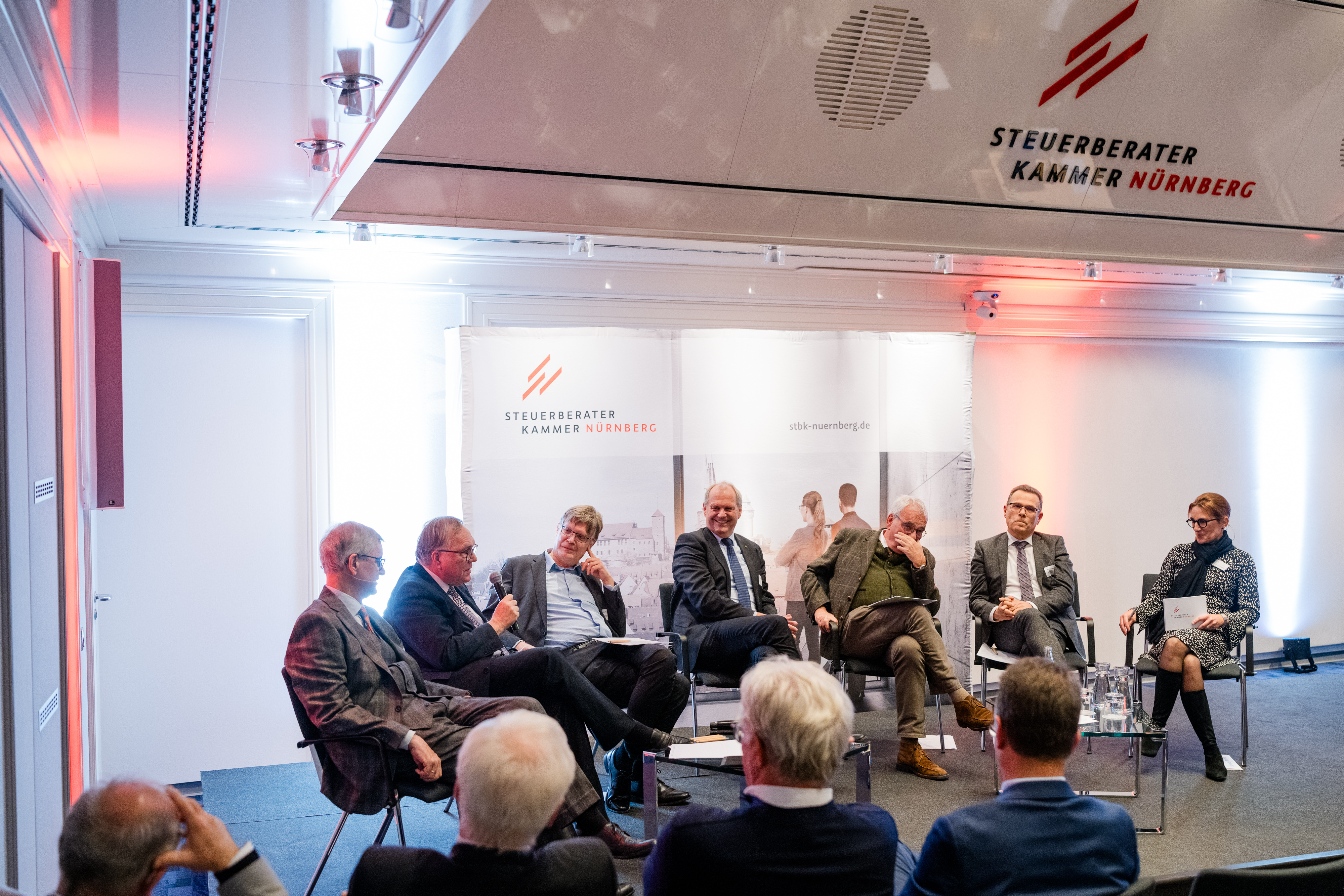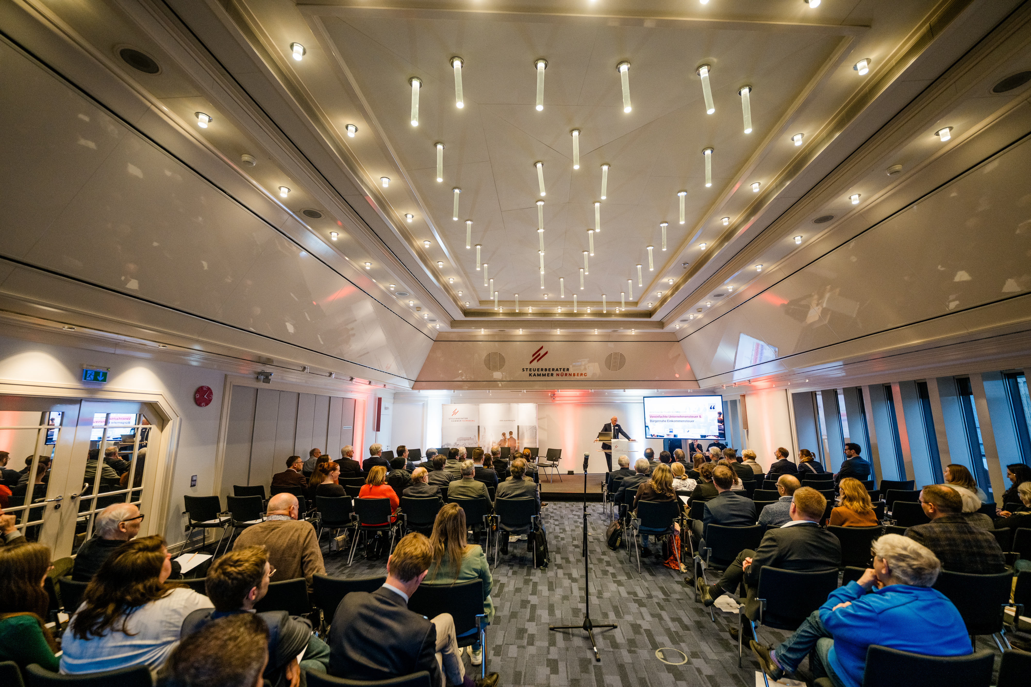 Am 20. November 2025 lud die Steuerberaterkammer Nürnberg gemeinsam mit der IHK Nürnberg für Mittelfranken und der HWK für Mittelfranken zu einer Podiumsdiskussion in ihre Räumlichkeiten in der Nürnberger Innenstadt. Knapp 100 Teilnehmer verfolgten die einleitenden Vorträge und die facettenreiche Diskussionsrunde, die mit einem gemeinsamen Appell an die Politik endete.