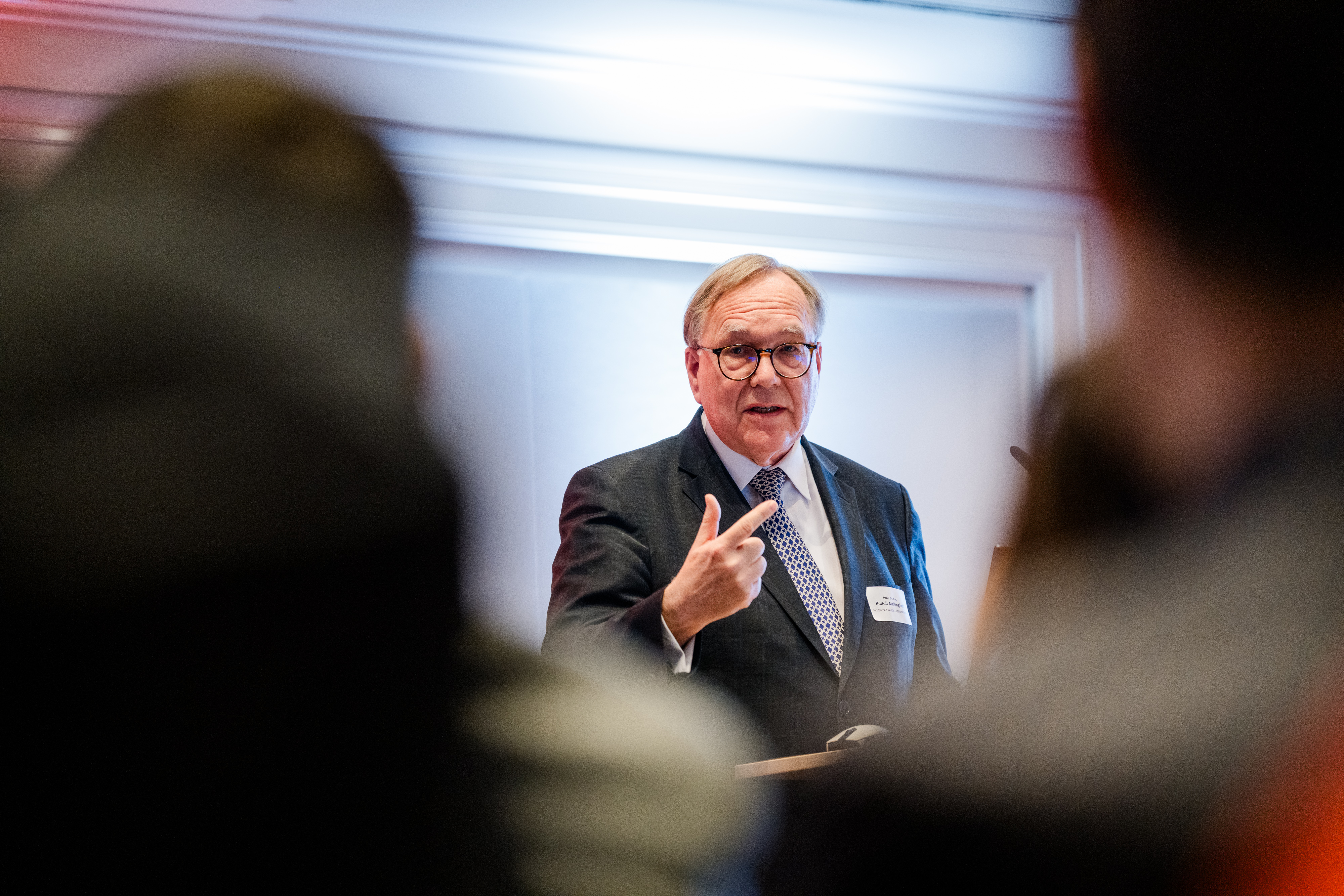 Als Gastgeber startete Kammerpräsident Dr. Dieter Mehnert mit einer kurzen Einleitung in das Thema, das auf den Vorschlägen der Expertenkommission „Vereinfachte Unternehmensteuer und bürgernahe Einkommensteuer" basiert. Für die IHK richtete die Vorsitzende des Rechts- und Steuerausschusses, Frau Gerlinde Wanke, ihren unternehmerischen Appell an die Zuhörenden. Dr. Rainer-Johannes Wolf führte aus Sicht der Handwerkskammer in das Thema ein, bevor die Moderatorin des Abends, Vizepräsidentin Prof. Dr. Susanne Schmidt-Pfeiffer (StBK) das Wort an den Leiter der Konzernsteuerabteilung bei Diehl, Herrn Thomas Dierichs, übergab. Er erläuterte die Vorschläge der Expertenkommission zur Unternehmensteuer, die vom Juli 2023 bis zum Juli 2024 eingesetzt worden war. Als weiteres Mitglied der damaligen Expertenkommission gab Prof. Dr. Rudolf Mellinghoff einen detaillierten Einblick in die Vorschläge zur bürgernahen Einkommensteuer.